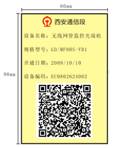 粘贴位置:电缆井、手孔、弱电间等线缆布放位置,距线缆接头15mm处使用扎带进行固定。